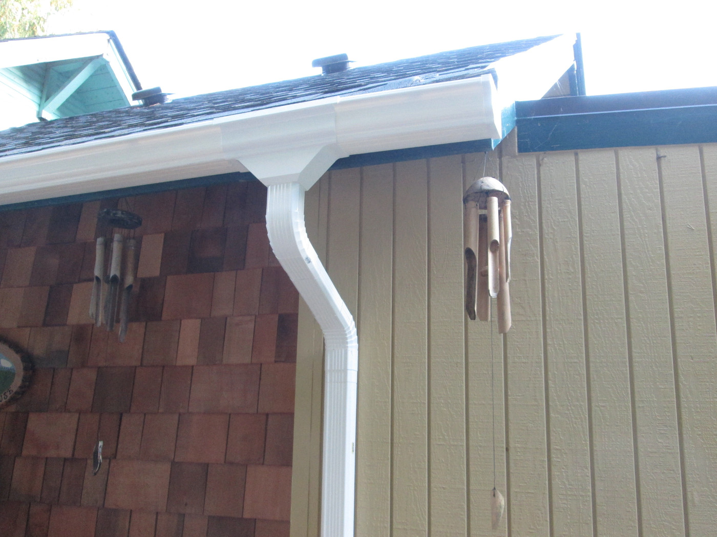 Vinyl gutters from the hardware store may be inferior, but they’re cheap, DIY, and they can be painted any color you like.