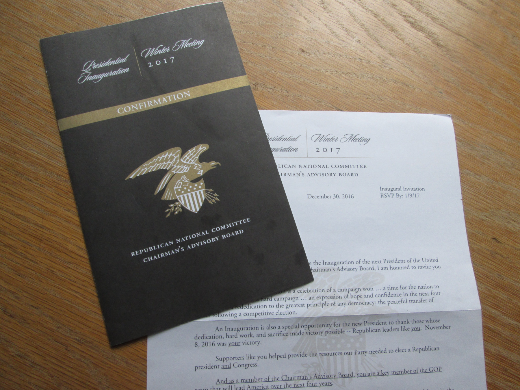 Well, well. Lookee what I got: an invitation to Trump’s inaugural.