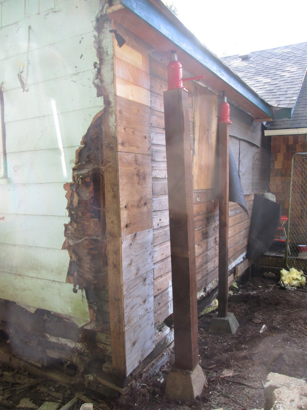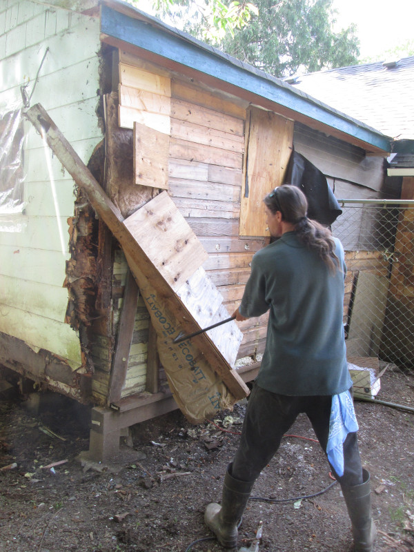 Even after the not-a-garage was gone and the roof re-shaped, the west wall (the wall about which this entire saga is actually being written) was still a mess, though. It felt like it was going to be awful forever.