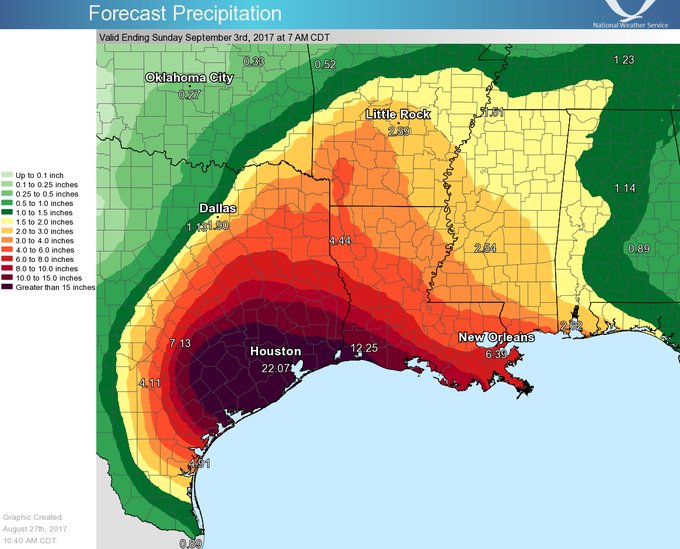 They’re also reporting on the nine trillion ton cube of water (“two miles high, two miles wide!”), and making Harvey out to be the largest rainfall ever to hit the U.S. — with more to come. Except of course that describing rainfall in terms of cubes or other colorful terms (“fill the Great Salt Lake — twice!”) is meaningless except for impressing the rubes.