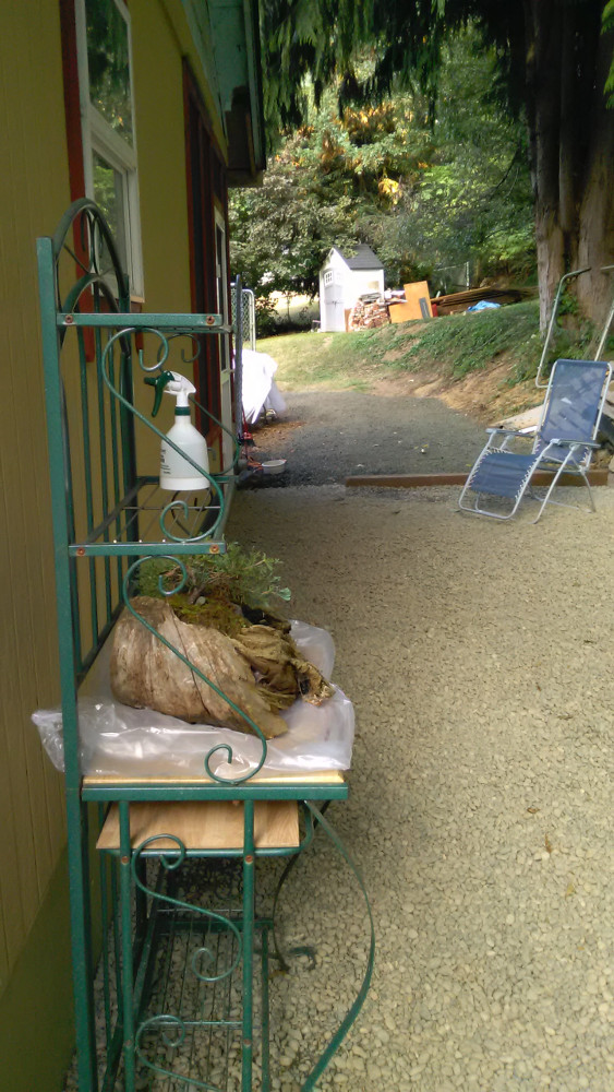 Now there is this tiny patch of forest on the hill behind my newly beautiful house. Since buying the place I’ve wanted to cut a small trail up there. But now that I’ll be looking at that hill all the time, I’m thinking a future project for the Monk is “The Fern Trail.” (He hates ferns and would like them all dead; I think they’re so beautiful and so right for this part of the world that someday I want to replace my lawn with nothing but ferns, salal, knickknick and other plants that grow wild in our forests.)