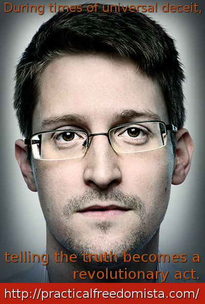 I love it both because of its message (whose source is unknown, though people attribute it to Orwell) and because I admire Edward Snowden.