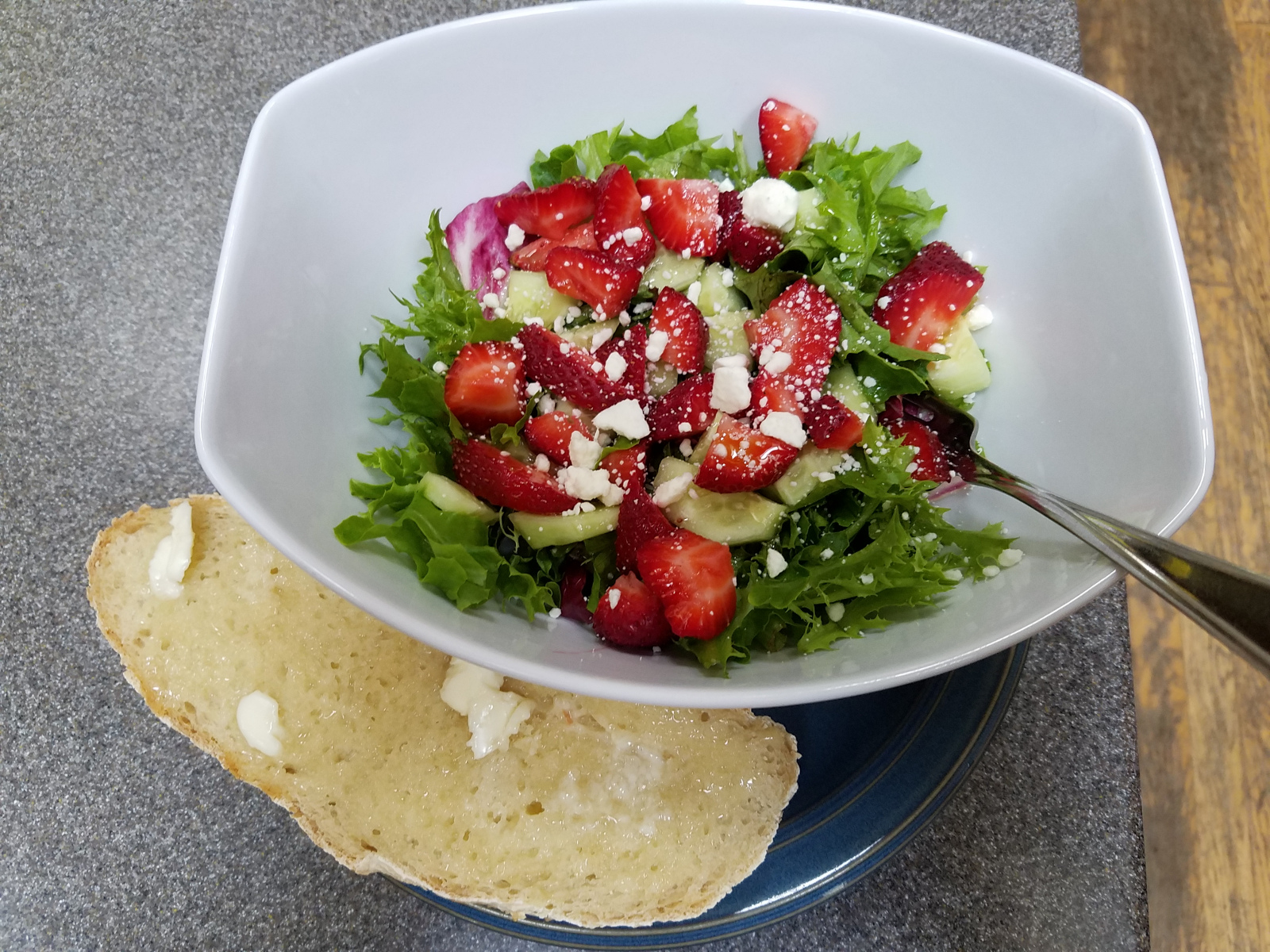 Seconds after I blogged, Furrydoc shared a photo of her dinner for tonight, made up almost entirely of ingredients bought at the market today, right down to the homemade balsamic dressing. Now, that’s pretty.