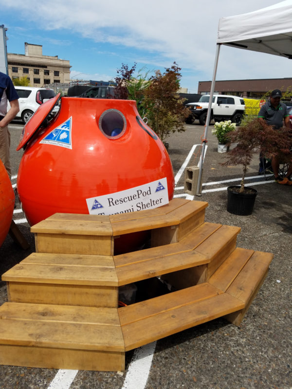 Videos available via the site do show the thing as being amazingly stable and buoyant in water (though quite a rough ride). And in truth, no matter how bad a long ride in that pod might be, there are places along the Oregon and Washington coast so flat and wide that there’s almost no chance of escaping a tsunami. This might be all you’ve got, other than clinging to a piece of floating debris and hoping not to get crushed by some bigger piece of debris.