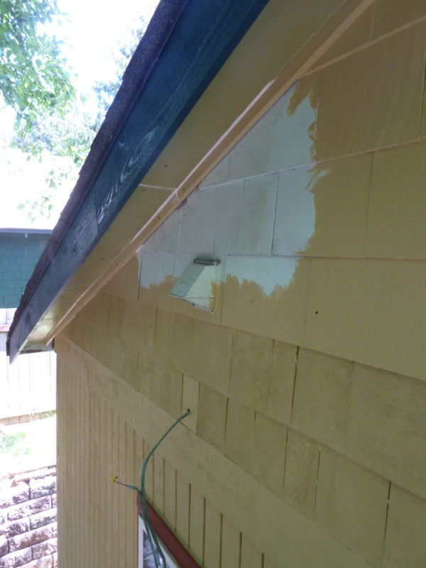 On Tuesday The Wandering Monk and I got the north gable end repaired, trimmed, and almost ready to paint.
