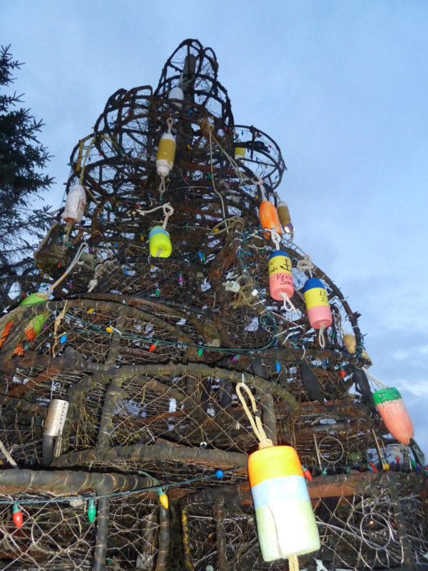 It’s an artful heap of crab traps, aka crab pots. Decorated with floats, one from each boat in the local fleet.