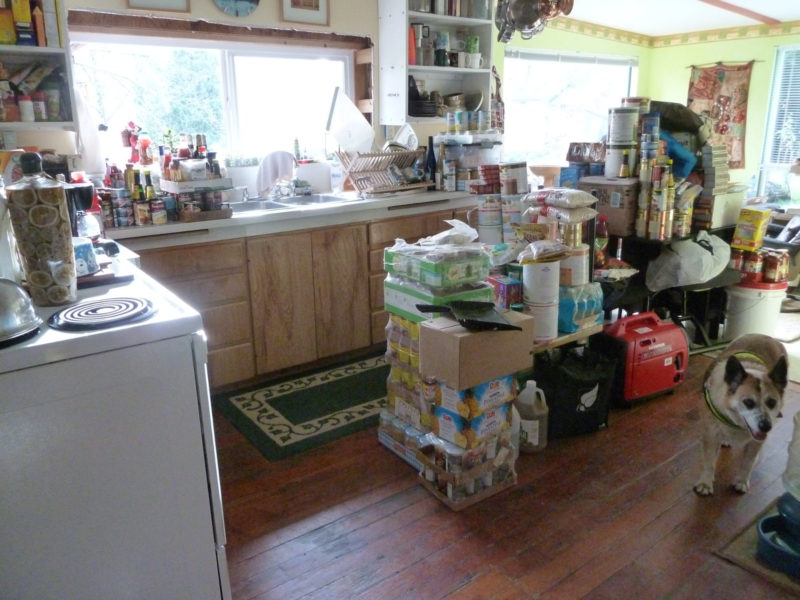 My preps are far from comprehensive and they’re for one person, not a whole family. I assume (and hope) you folks with larger food storage requirements have garages, basements, storage sheds, spare rooms, bunkers, or cleverly concealed spaces between your walls.