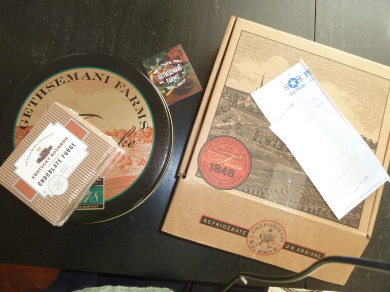 Hm. Given that, perhaps I shouldn’t have cut into that Gethsemani cake at all. I should have just kept it sealed and stashed it away. Oh well; too late. Maybe I’ll save the Bourbon-soaked fudge for the Apocalypse.