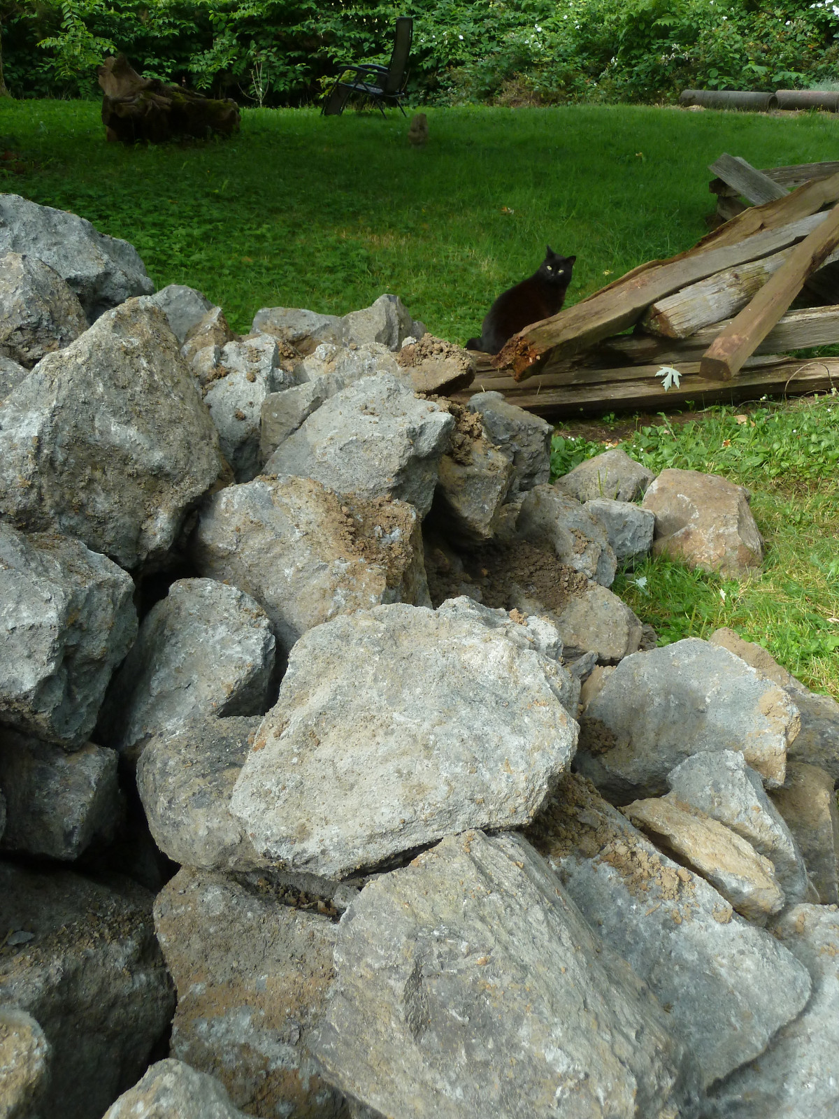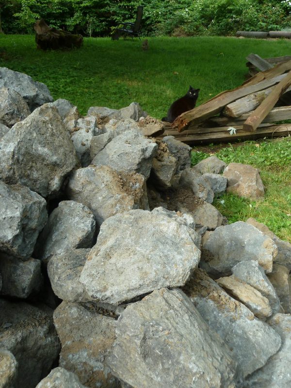 The cat likes them, though. As averse as she is to anything new, she took to the rock pile right away and has been climbing all over it from the first hour. Naturally, being a cat, she wouldn’t do her queen of the hill routine when I wanted a photo. But she did deign to turn her regal head and give me A Look.