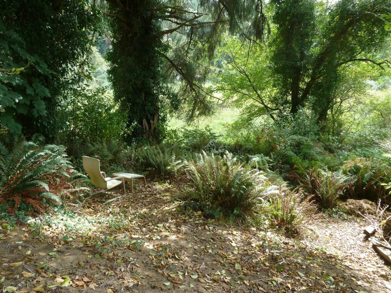 I’ve had the image in my head for years: a gravel path with steps curving down the hill, a lawn, maybe with two or three landscaped ovals, maybe a fenced-in chicken coop in one corner, another trail winding up the other side, and at the bottom in this intimate little fern grove …
