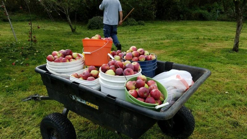 The picture doesn’t begin to convey the awesomeness of that one rather small tree. I’ve never seen apples growing in such profusion. The weight of them was such that every branch but one was bent earthward, a couple actually touching the ground. The tree belonged to their neighbor, a sweet Scandinavian lady who has grown too old to pick and process fruits from her own garden. I believe they had already picked a share for her.