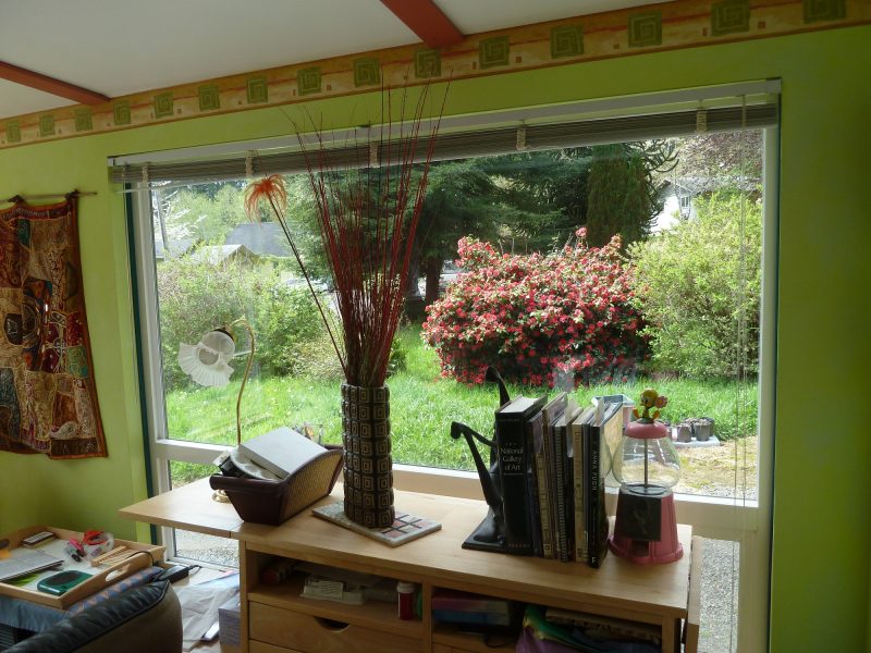 I particularly appreciated the shot you included, taken from inside your home. Such an appealing scene, both inside and out–and I remember the look of that house when you bought it, when I would have needed all of my courage just to walk through.