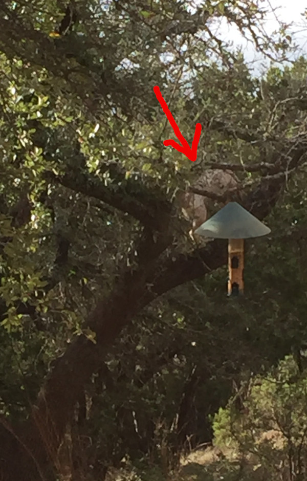 That’s her, up there above the bird feeder.