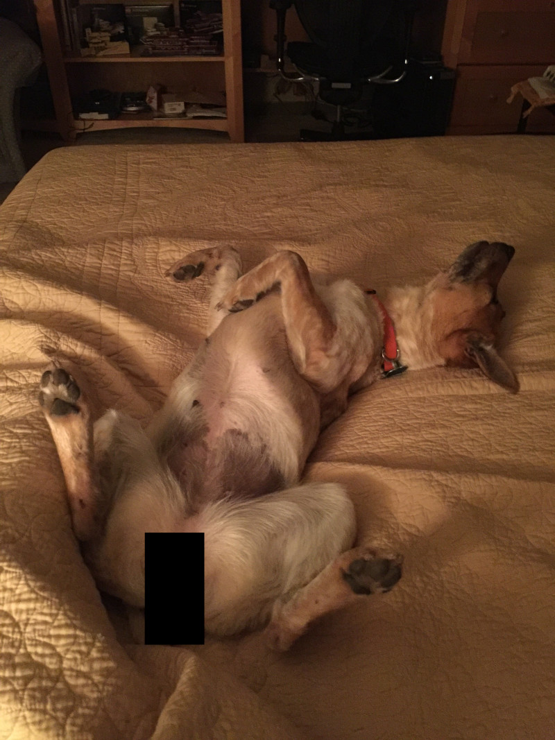 By special request — and because we could all use a little extra cheer at the dark days of this ChrismaKwanzaaHannukahYule season — I present the amazing doings of the newest member of our tribe, Trixie the Tailless Wonderdog.